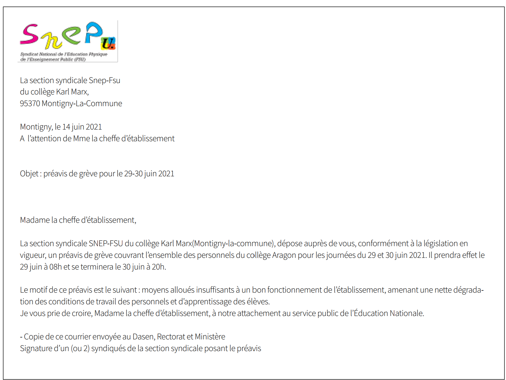 MODÈLE DE PRÉAVIS DE GRÈVE