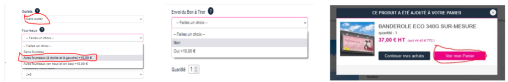 ➥ On peut alors utiliser la création sur une commande, ici en l’occurrence la banderole