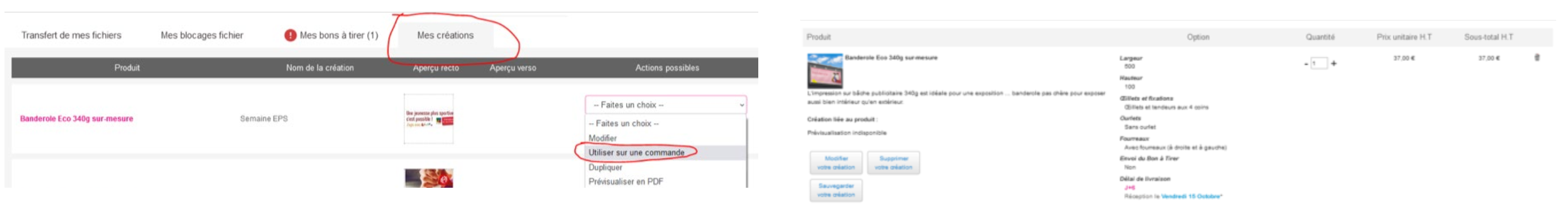 Il faut aller sur Mes créations et choisir « Utiliser sur une commande »